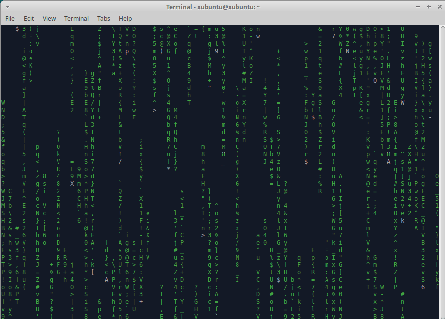 Päätin ensiksi asentaa CMatrix-nimisen ohjelman. Ohjelma asentui suorittamalla komentokehotteessa komento sudo apt-get install cmatrix. Ohjelman sai avattua kirjoittamalla ohjelman nimen komentokehotteeseen (cmatrix) ja painamalla Enteriä. Ohjelma käynnistyi, ja ruudun yläraunasta alkoi valumaan, Matrix-elokuvasta tuttuja, vihreitä merkkejä. Totesin ohjelman toimivan, ja suljin sen painamalla näppäimistöstä näppäintä Q.