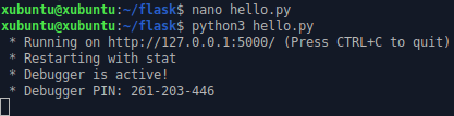 Samalla komentokehotteeseen tulostui ilmeisesti testiympäristön debuggaustoiminnon app.run(debug=True) vuoksi kaksi riviä.