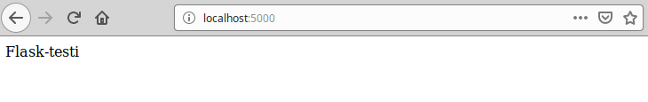 Kokeilin vielä Flaskin toimivuutta selaimessa, kirjoittamalla osoiteriville http://localhost:5000. Luomani testisivu avautui.
