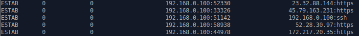 Näyttää TCP-portit. Ilmeisesti muodostetut yhteydet (ESTAB)?
