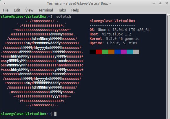 Neofetch on terminaalissa toimiva sovellus, joka näyttää järjestelmätietoja. Asensin ensin Neofetchin yhdelle virtuaalikoneistani: