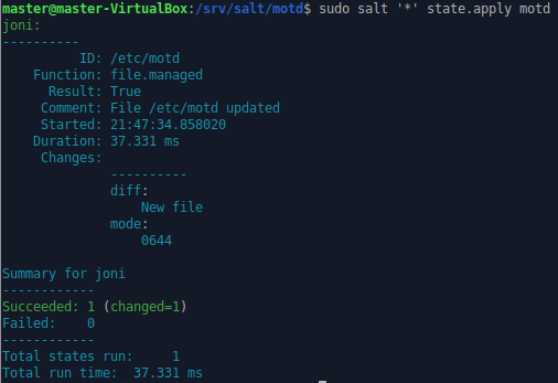 sudo salt '*' state.apply motd