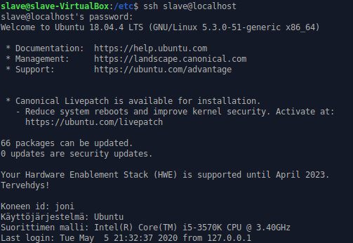 Tarkoituksena oli luoda templatea käyttäen orjalle viesti, joka näytetään kirjauduttaessa sisään ssh:lla.